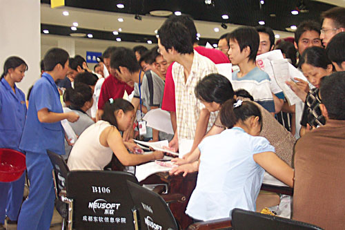 成都东软信息学院04级新生报到场面火爆