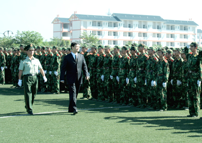 9月14日上午,我院2007级新生军训阅兵仪式暨开学典礼在学院运动场隆重举行。学院党委书记、院长张应辉,副院长胡景德、汪琛、黎明,党委副书记张宪民,军训领导小组及军训部队首长李彪等一同出席。典礼由党委副书记张宪民主持。学院各部门负责人、2007级全体新生以及军训部队全体教官参加了阅兵仪式。 号角吹连营 沙场秋点兵 阅兵式在雄壮嘹亮的国歌声中拉开了序幕。学院院长张应辉在军训部队首长李彪的陪同下,检阅了精神饱满的新生军训方队。“同志们好!” “首长好——”,“同志们辛苦了!” “为人民服务——”同学们身着统一军装,一个个精神抖擞,神采飞扬,铿锵有力的口号声响彻学院上空。 “标兵就位!”一声号令,振奋人心的分列式正式开始。运动场上响起激昂的《中国人民解放军军歌》。持枪方队首先正步通过主席台。紧接着,其他方队依次走过主席台。英姿飒爽的同学们迈着矫健的步伐,踢着整齐的正步,高喊军训口号,雄赳赳、气昂昂地依次通过主席台,接受学院领导和部队首长的检阅,充分展现了此次军事训练的成果和新时代大学生奋发向上的精神面貌。 分列式结束之后,同学们还进行了擒敌术、格斗等军事科目的汇报表演,赢得了现场热烈的喝彩。表演结束后,汪琛副院长宣布了军训先进团体和优秀个人名单,军训一中队一区队等4个区队获得“优秀区队”称号,李迅等65名同学获得“优秀学员”称号。 金秋结硕果 寄语暖人心 军训阅兵结束后,还进行了2006-2007学年奖学金颁奖仪式。学院副院长胡景德宣布了年度“华天奖学金”、“企业奖学金”获奖名单。06日语强化3班的叶冉琴和06数据库2班的刘端获得“华天奖学金”;刘暻蓓、邱兆艳、江梅等72名同学分别获得“企业奖学金”一、二、三等奖。 华天奖学金获得者叶冉琴同学在发言中说,大浪淘沙,方显真金本色,大学几年里,我们一定要努力巩固知识结构,专研理论内涵,丰富实践经验;要充分珍惜时间,为以后更为激烈的竞争乘风破浪,展现我们的风采。 教师代表、新生代表也分别在仪式上发言。 学院党委书记、院长张应辉最后发表了讲话。他说,通过刚才的军训汇报表演,同学们整齐的军姿和飒爽的面孔给留下了深刻的印象。半个多月的军训生活使你们进步了很多,你们的精神面貌发生了很大的变化,看到你们一个个不怕苦、不怕累的精神,我也为你们感到骄傲。同时也希望你们通过这次的军事训练,能把你们从军训中学到的吃苦耐劳、顽强拼搏的精神和品质用于你们今后的大学生活中。他要求大家明确学习目标,注重自身培养,成为一名合格的大学生;把学习专业知识与提高综合素质统一起来,成为一个复合型人才;注意处理好知识继承与创新的关系,成为适应知识经济时代的创新型人才,并且“敢于志存高远,善于实事求是。”用生命中最宝贵的青春时光,把握好时间,在东软学会认知、学会做事、学会为人。将来用合格的答卷,回报学院,回报老师,回报滋养我们的父母和亲人。 | ||||||||||||||