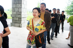 领取礼物的教职工排起了长队