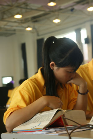 参赛队员在认真思索题目