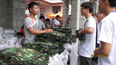 可爱的学生志愿者为师弟师妹们发放军训服装