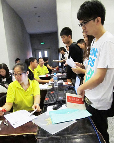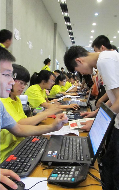 报到工作有条不紊地进行,缴费处工作人员认真地核查数据