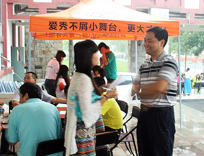 新生报到期间,学校领导一行亲临现场,对各系新生报名处、缴费处、接待处进行了全面走访,检查指导各项工作的落实情况。学院党委书记、院长张应辉教授认真听取了学院各系部负责人关于新生报到情况的汇报,并对迎新工作人员进行亲切的慰问,要求参加新生接待的老师和学生志愿者务必将工作做细、做好。