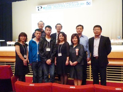 东芝代表八木(左五)和内田(右三)和获奖学生合影