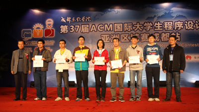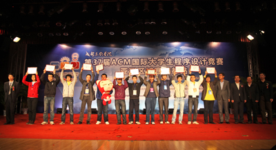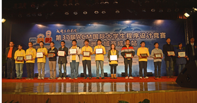 11月11日,第37届ACM国际大学生程序设计竞赛亚洲区域赛闭幕式暨颁奖典礼在学院落下帷幕。出席此次闭幕式暨颁奖典礼的嘉宾有 ACM国际大学生程序设计竞赛亚洲区组委会主席黄金雄教授、ACM中国区指导委员会秘书长周维民教授、IBM中国区大学关系经理周恩昌先生、达内科技人才服务中心直辖区副总经理李旻先生。学院副院长曹云凤教授、副院长张辉教授、财务总监陈云华、院长助理兼教务部部长康桂花、计科系主任兼党总支书记杨瑞良、计科系常务副主任巫家敏和计科系党总支副书记贾骐参加了闭幕式。