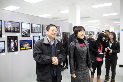 参加开幕式的领导老师和同学们参观艺术节作品展