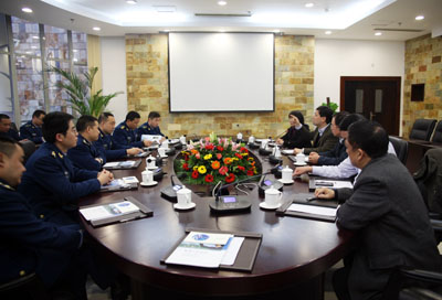 11月28日下午,空军都江堰航空医学鉴定训练中心政委金中、院长王俊凌一行来访学院,学院党委书记、院长张应辉教授、副院长曹云凤教授、院长助理兼教务部部长康桂花、院长办公室主任易胜华、计科系主任兼党总支书记杨瑞良热情接待了来访客人。
