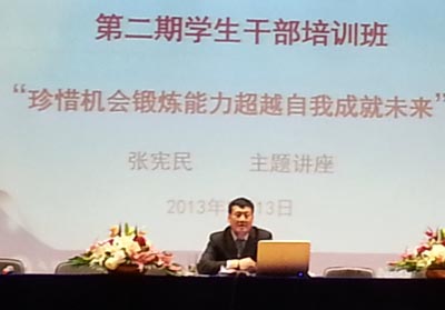 学院党委副书记、副院长张宪民主讲学生干部培训的第一堂课