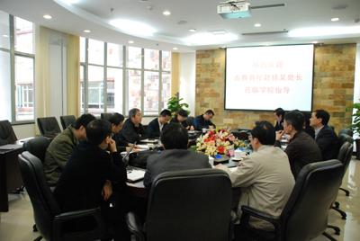 学院领导与赵处长在学院第一会议室举行了座谈会。座谈会上,学院党委书记、院长张应辉教授向赵处长放映了5•12纪念短片《我们在一起》,张院长介绍,5•12大地震是学院发展的里程碑,学院重建与发展离不开政府的大力支持,学院一定会心怀感恩,用优异教学成绩去回馈社会。随后,张院长详细介绍了东软集团的发展历程、业务范围和服务领域,并就“东软为什么办教育、怎么办教育、培养人才目标、国际化的重要性、创新能力和批判性思维的培养”等问题作了详细阐述。张院长指出,基于社会和企业对IT人才的巨大需求,东软开始办教育。随着时代和科技进步,企业对人才的需求也不仅仅限于分数,而更多要求的是学生的能力和实践操作,因此学院基于实际情况进行了TOPCARES-CDIO教育教学改革,通过项目教学法培养了学生的动手能力、创新能力、批判性思维能力和小组合作能力等。张院长强调教育的目的就在于使学生找到好工作,持续地找到好工作,帮助别人找到好工作,让每一个学生都能拥有积极向上快乐的人生。随后,张院长以SOVO大学生创业中心的运作和孵化机制为例,阐述了产学一体化以及学科融合等内容。