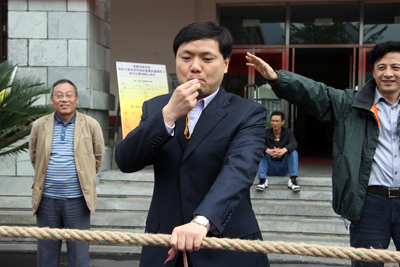 学院党委书记、院长张应辉吹口哨示意比赛开始