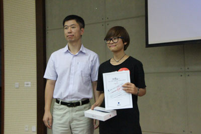 最终,大赛评选出了本次比赛的一、二、三等奖。来自学院2011级软件技术专业李委团队获得了一等奖,成都睿峰科技有限公司总经理张俪为获奖选手颁奖;来自四川交通职业技术学院邱梦玉同学获得了二等奖,学院副院长张辉教授为获奖选手颁奖;来自学院2011级软件技术专业杨皓棱团队获得了三等奖,成都信息工程学院软件工程学院副院长卢军为获奖选手颁奖。