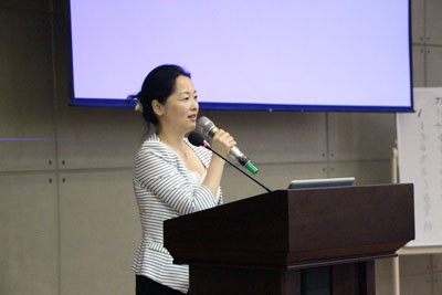 成都睿峰科技有限公司总经理张俪做了总结发言。她指出,此次大赛旨在开发和挖掘同学们的创新意识,希望同学们在今后的学习中能够积极发散思维,树立创新意识,多滋生出新的创意。