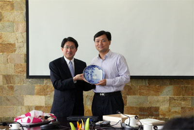 学院领导与来访客人在学院第一会议室举行了座谈。张院长代表学院对来访客人的到来表示了热烈欢迎,并向客人介绍了学院办学理念、办学定位、办学特色、教育教学改革、国家化交流和产学合作等诸多方面内容,永田常务对学院的办学理念和校园氛围表示认同与赞赏。会上,永田常务首先就东芝解决方案公司的相关情况做了简要介绍,并希望今后能够进一步加强交流合作。随后,学院师生就相关行业问题与永田常务一行做了深入探讨和交流。会后,张院长代表学院与永田常务互赠了纪念礼物。