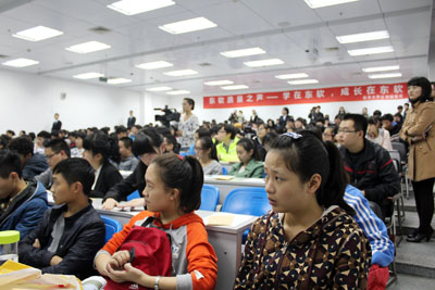 11月7日下午,“东软质量之声”优秀大学生巡回报告会第二场在A3-103教室举行。学院副院长张辉、相关系部主要领导和数艺系2013级240名新生参加了报告会。