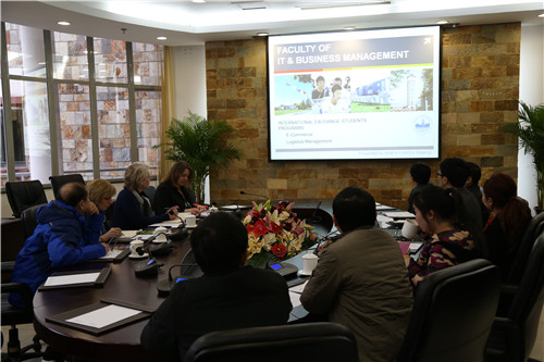 鹿特丹商学院来宾向学院师生介绍商学院办学情况