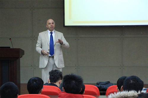 下午,美国玛赫西管理大学计算机管理学院院长Dr. Gregory Guthrie在学院国际报告厅做题为“Computing, Creativity and Consciousness”的学术讲座,并就学科专业学习、联合培养项目等问题与学生进行了沟通和交流。