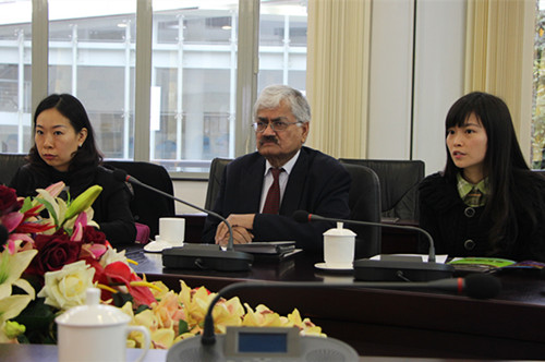 3月20日上午,美国芝加哥伊斯维斯大学(East-West University, Chicago)校长Dr. M. Wasiullah Khan,招生部主任Mary Lee一行莅临学院访问并洽谈两校合作事宜。学院副院长张辉教授及国合部相关老师热情接待了来访客人。