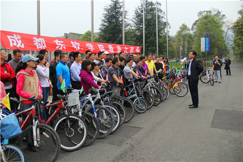 计科系党总支副书记贾骐向参加活动的老师简要说明骑游路线及注意事项后,学院党委书记、院长张应辉宣布骑游活动正式开始。