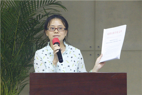 科研部副部长喻超从教学、职称评估、顺应学校发展的需要和收入四方面介绍了科研的重要性,对学院科研经费管理规定、科研管理制度、科研考核方法、科研项目申报以及学院科研机构方面的具体内容进行了说明。他希望教师除了教学之外能够更多参与到科研中来。