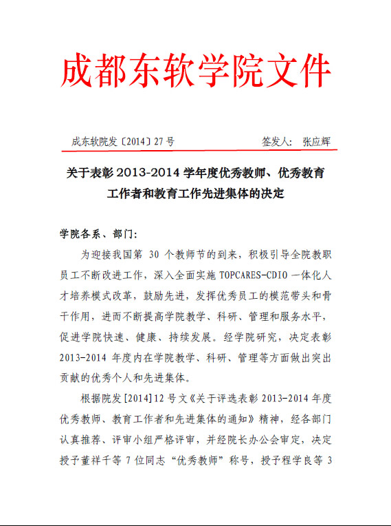 关于表彰2013-2014学年度优秀教师、优秀教育工作者和教育工作先进集体的决定