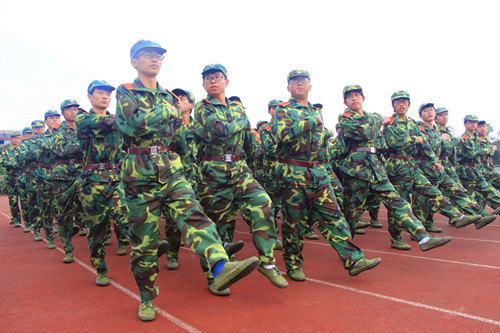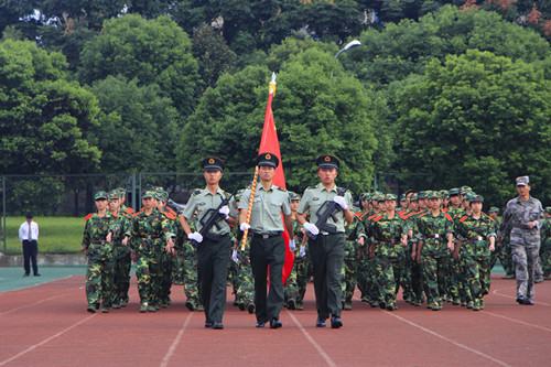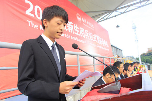 参训部队首长中国人民解放军78187部队副参谋长柏长征少校为典礼致辞。他表示,在教官们严格要求和军训时间紧迫的情况下,同学们依然坚持不懈,严于律己,最终圆满完成军训任务。他希望同学们在日后的学习和生活当中能继续发扬这种不畏艰苦,勇往直前的精神风貌。