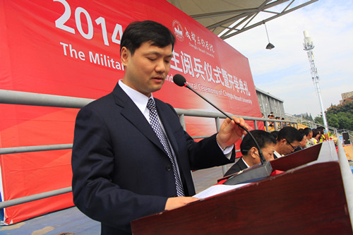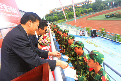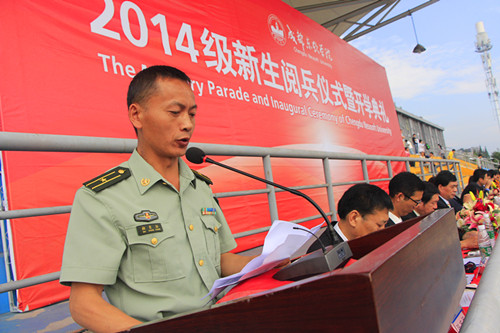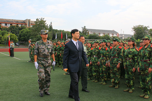 学院党委书记、院长张应辉在78187部队副参谋长柏长征少校以及学院2014军训团王琦少校的陪同下逐一检阅了军训方阵,并向军训学员们致以亲切的问候。