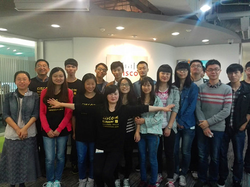 为了激励12级同学的学习积极性,大赛当天,学院计科系网工团队组织12级网络工程1-4班10名同学参观了思科公司成都办公室,听取了获奖同学的学习经验。同时,思科公司的工程师为同学们讲解了网真会议系统、思科办公室无线接入的原理和应用。本次随行充分提高了学生的学习兴趣,为后续该项赛事的开展打下了良好的基础。