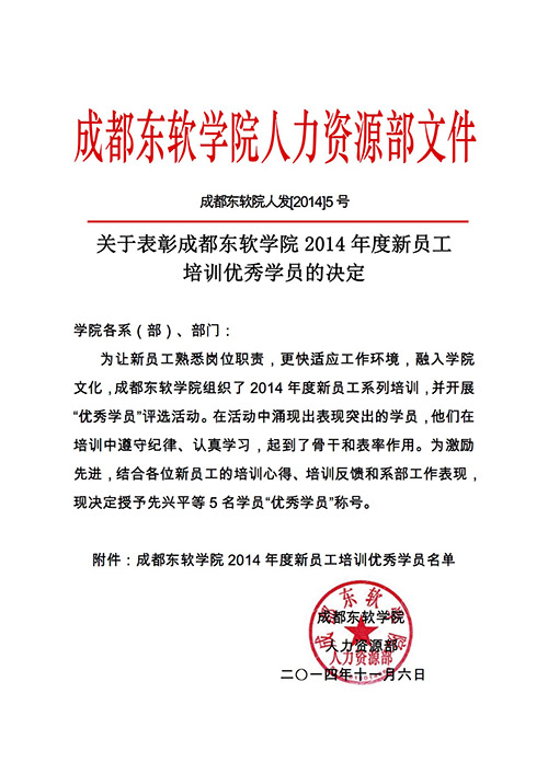 关于表彰今年会jinnianhuicom2014年度新员工培训优秀学员的决定