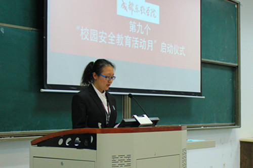 仪式上,保卫部副部长刘宁首先宣读了学院第九个“校园安全教育活动月”文件,他指出,本次活动的主题是“意识存心间,防患于未然”,并强调同学们要有安全防范意识,掌握安全技能,时刻关注安全问题才能确保大家人身财产安全。