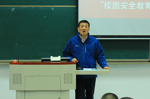 为了增强广大师生的安全意识,掌握避险技巧,减少校园安全事故的发生, 11月10日学院第九个“校园安全教育活动月”启动仪式在A3—103举行。学院党委副书记、副院长张宪民、学工部部长程学良、保卫部副部长刘宁及相关老师、同学参加了此次活动。