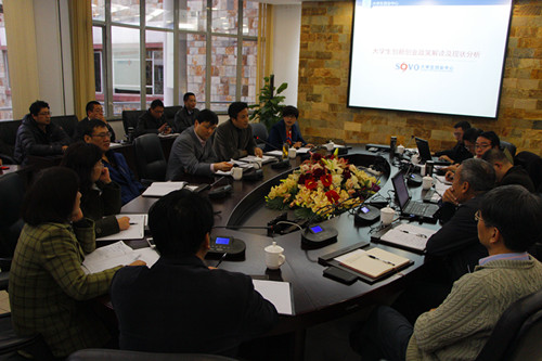 会上,学院大学生创业中心主任罗剑波首先从创新创业社会工作环境、国家和地方政府投入力度、高校创新孵化园的发展、我院创新创业工作发展四个方面出发,对大学生创新创业的政策进行了解读,对其现状进行了分析。