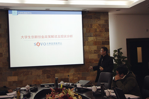 学院大学生创业中心主任罗剑波进行创业政策解读及现状分析