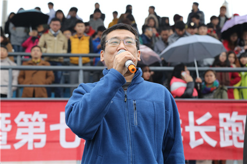 学校代为副书记张宪民致辞,他指出,12.9运动是发源于北平各个高校的一场学生爱国运动,学校举办第七届冬季长跑比赛旨在深入凝聚广大学生爱国、立志、修身的热情,培养、锻炼同学们的爱国主义精神,增强团队的合作意识,同时,培养同学们坚持不懈的精神。