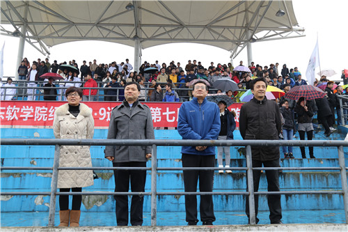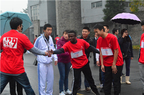 学院质量部部长程学良简要介绍了12·9运动并宣读了长跑比赛规则,他强调在雨中比赛更要注意安全,友谊第一,比赛第二。
