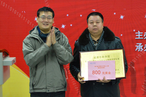 最后,经过激烈的比赛,软件工程贾涛、张尧,信息管理与信息系统团队欧阳任棣等20名同学获得本次大赛一等奖,学院党委副书记、副院长张宪民为获奖同学颁奖;软件工程杨明宇、财务管理与会计学刘晨、网络工程陈渝等40名同学获得本次大赛二等奖,学院院长助理康桂花为他们颁奖;网络工程曾龚、范天亮,计算机科学与技术田宇杭等104名同学获得本次大赛三等奖,各系党委副书记为他们颁奖;软件工程团队荣获本次大赛团队奖第一名及最佳组织奖,网络工程团队荣获团队奖第二名,电子商务与市场营销团队荣获团队奖第三名。此外,还有104名学子获得了优秀奖。