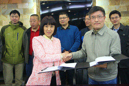 最后,学院副院长康桂花与菁联软件公司朱仲武博士作为双方代表进行签约。