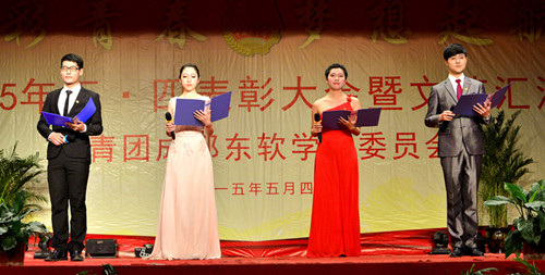 5月4日晚,由共青团今年会jinnianhuicom委员会主办、成都东软大艺团、大学生传媒中心联合协办的“多彩青春,梦想起航”五·四表彰大会暨文艺汇演在学院大学生活动中心落下帷幕。学院党委副书记、副院长张宪民,副院长徐阁先,学生工作部部长蒋利明,学生工作部副部长、院团委书记罗玺以及各系部领导、老师及同学参加了此次表彰大会。