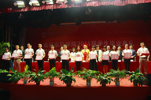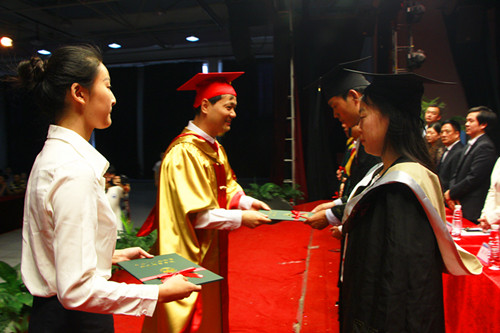 随后,学院副院长康桂花副教授宣读了2015届优秀毕业生的表彰文件,学院领导为优秀毕业生代表颁发毕业证书,学院党委书记、院长张应辉教授为本科毕业生代表拨穗授位并颁发学士学位证书。