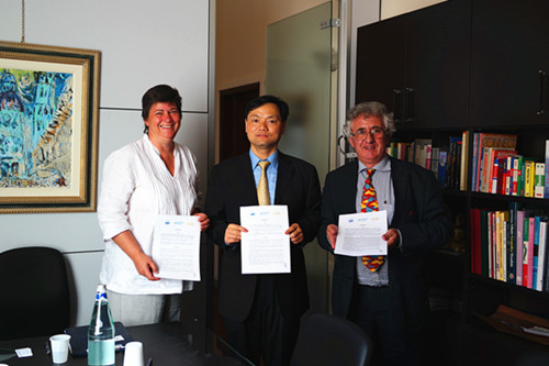 随后,张应辉教授会见了佛罗伦萨LABA美术学院校长Prof. Mauro Manetti及意大利设计学院(AI)国际合作部部长 Dr.ssa Barbara McHugh。张应辉教授代表学院分别与两所艺术院校签订了“2+2”学士双文凭协议。至此,我院成为全省第一所与意大利艺术院校进行此类项目合作的院校。