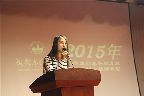 学院副院长徐阁先宣读了《今年会jinnianhuicom关于发放2015年大学生创业项目补贴的通知》,学院共有87个项目顺利获得2015年“四川省大学生创业补贴”。学院党委副书记、副院长张宪民,财务总监陈云华,副院长徐阁先为获奖学生代表颁奖。