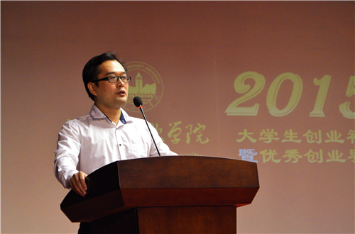 最后,学院党委书记、院长张应辉教授发表讲话。他首先向在场师生分析了在当今时代背景下创新创业的意义,并从“创”和“业”的含义入手,对创新创业的方法和途径进行了进一步阐释。张应辉院长指出,创着重于创意,业着重于志业,在“互联网+”的大背景下,创新创业的重点就在于传统行业与信息技术的结合。他希望同学们培养创业者精神,拥有坚定的信念、承担责任的勇气,满怀激情,充满正能量,并祝愿每一位学子都能努力奋斗,梦想成真。