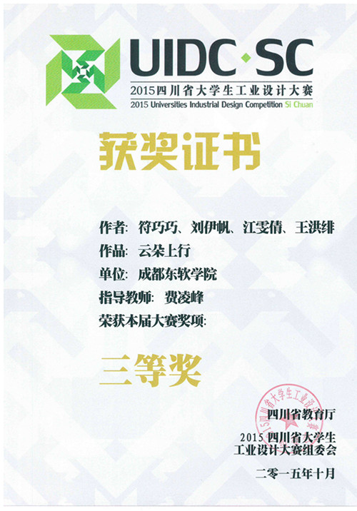 最终,经过大赛9位评审委员会专家的认真评选, 学院共荣获三等奖三项。获奖项目分别为:由宋祥波老师指导的13级产品造型设计3班黄鹏等同学设计的“比翼双飞”;由周爵禄老师指导的13级工业设计2班袁妮同学设计的“生津盘”;由费凌峰老师指导的13级产品造型设计2班符巧巧等同学设计的“云朵上行”。