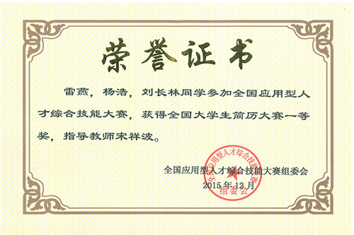 全国应用型人才综合技能大赛经教育部、科学技术部、工业和信息化部指导,由教育部高校毕业生就业协会、全国计算机辅助技术认证项目办公室、全国应用型人才培养工程管理办公室主办。全国共有4528支队伍报名参加了本届大赛,经过初赛,学院共3支队伍进入决赛,经过12月12日至15日三天的现场答辩和激烈角逐,学院数艺系学子沉着应对,一路过关斩将,最终获得一等奖1组、二等奖2组、三等奖5组的好成绩。由宋祥波老师指导的雷燕、杨浩、刘长林组获得全国一等奖,获得奖金1000元,由宋祥波、陈志刚老师指导的雷燕、石桐畅、李红组及刘倩、何姣东组获得全国二等奖。