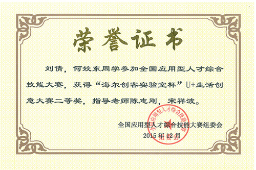 学院学子在2015全国应用型人才综合技能大赛中荣获佳绩