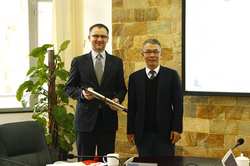 最后,学院副院长徐阁先代表学院向波兰驻华大使馆一等秘书Mariusz Pietrzak先生赠送礼物并合影留念。