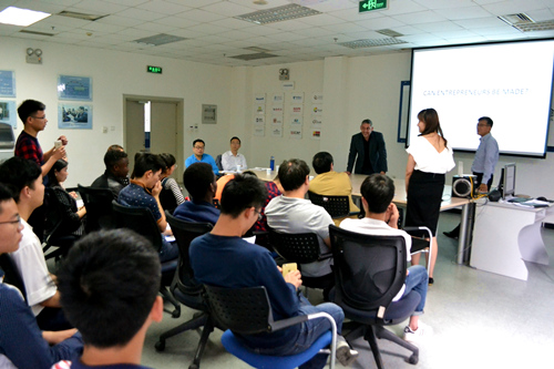 座谈会结束后, Ara副总裁一行到学院大学生创业中心(SOVO)进行参观,SOVO主任罗剑波进行了热情接待。交流中,罗主任首先从“基本情况、创业教育、平台搭建、服务提升、产出效果、公司简介”等六个方面对学院大学生创业中心进行了全面介绍。然后,Ara副总裁从自身的创新创业历程、经验与对学生的建议等方面发表讲座。最后Ara副总裁与学院学生代表进行了面对面的交流,交流中三家学生公司向Ara副总裁展示了自己公司的产品、理念、经营情况等,并就创业中的相关问题向Ara副总裁进行了请教。会后Ara副总裁对学院大学生创业中心的组织、管理以及学生的素质给予了高度的认可。