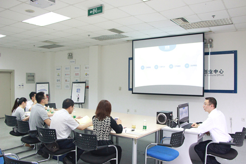 随后SOVO主任罗剑波向考察组做成果展示:他介绍了以多方经费投入、良好硬件基础、应用型大学为办学目标、完善的规章制度、强大的导师团队、T-C人才培养体系、虚拟经营、SOVO模式等共同组成的工作基础。他表示学院基地建设取得进步并积极举办创业大赛、营销大赛等多种活动,营造了良好创业创新氛围。学院现已组成多个的创新创业团队,在大学创新创业大赛中获省级一等奖1项、国家级奖项23项、省级25项,并在科技竞赛和其他比赛中积极参与并取得许多成绩。他指出学院着力培养有创业思维、创业意识、创新创业精神、创新创业能力的人才,对能力指标体系进行了修订,把创新创业的培养面向全体学生,将课上与课后、实践与理论联系起来。在教育体系方面,学院实行普适性、专业性、运营性三位一体的课程体系,实施开放型柔性化教学组织与管理,并面向教师和学生激励政策和制度保障。他还表示,大学生创业中心是学院创新创业的教育中心、组织中心、活动中心、创业孵化中心。