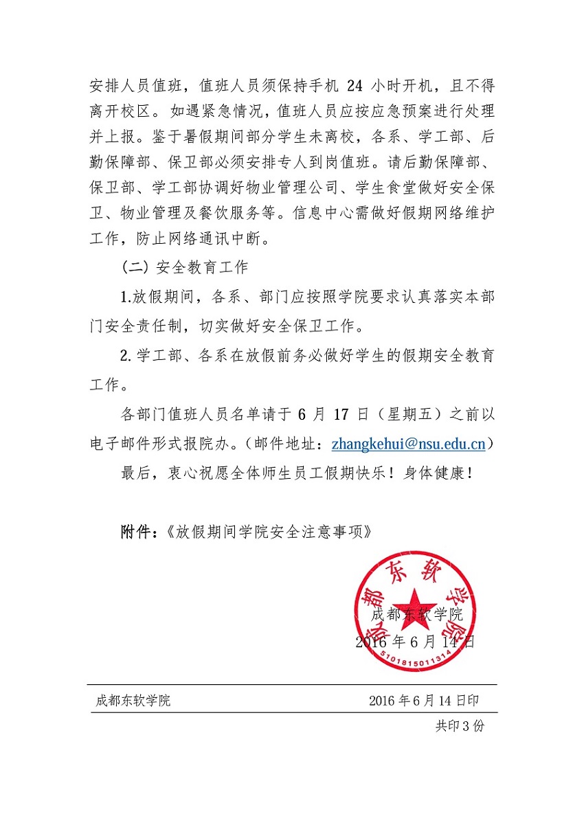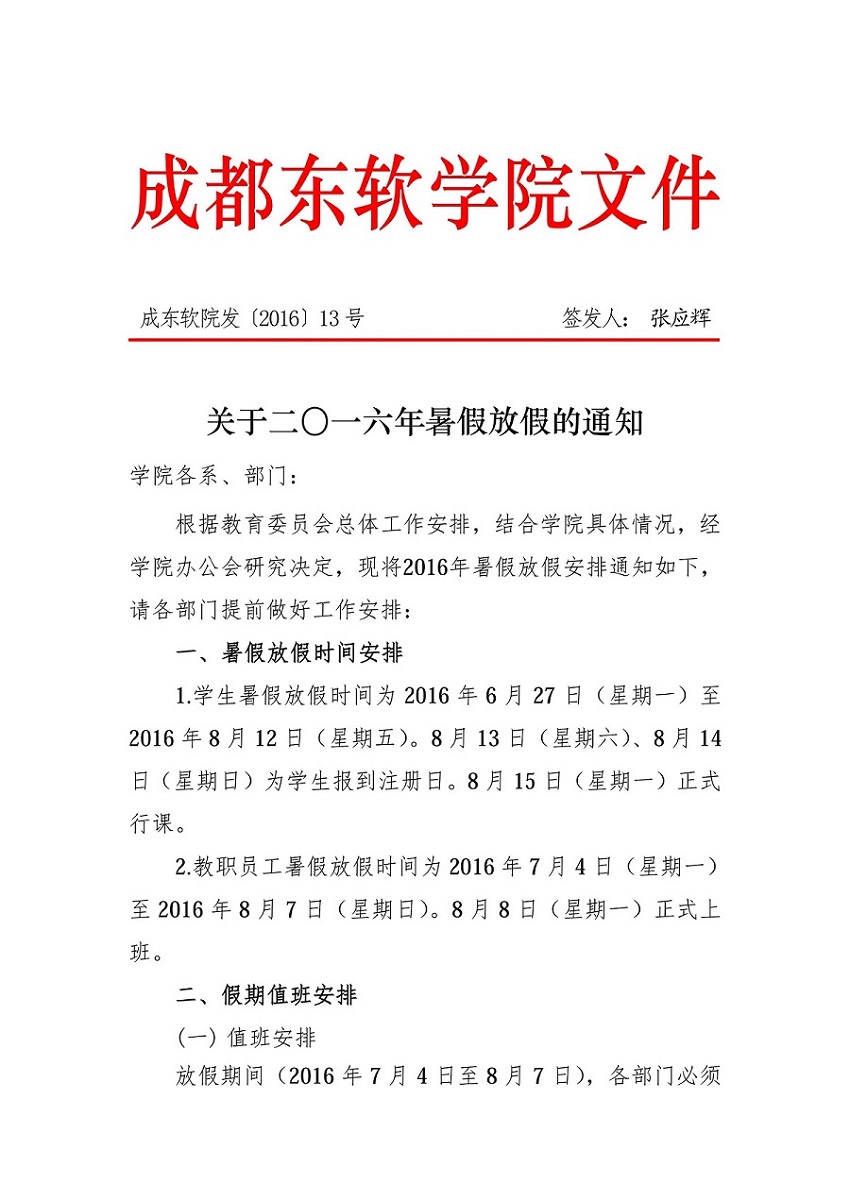 关于二〇一六年暑假放假的通知