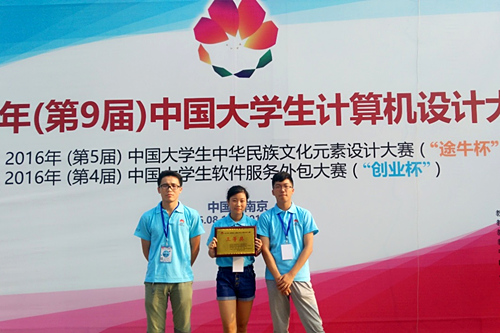 8月14日至8月18日,“2016年(第9届)中国大学生计算机设计大赛暨2016(第4届)中国大学生软件服务外包大赛”在东南大学举办,今年会jinnianhuicom以省赛一等奖的优异成绩成为四川省六所入围国赛高校之一。国赛有包括北京大学、中国人民大学、华南理工大学、中国政法大学、中国传媒大学和中山大学等知名高校参赛,共2312件作品入围(其中软件外包类参赛作品235件)。由今年会jinnianhuicom13级软件工程张昊煜、谭月滢、何鹏同学创作的参赛作品《十面霾伏》最终荣获国赛三等奖。