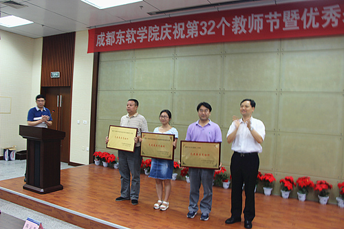 由学院副院长康桂花宣读《关于表彰2015-2016学年度优秀教师、优秀教育工作者和教育工作先进集体的决定》,宣布对11位优秀教师和教育工作者,以及4个教育工作先进集体的表彰决定。张应辉院长、刘宏副院长、张宪民副书记、陈云华总监、康桂花副院长为获奖团队代表及个人颁奖。